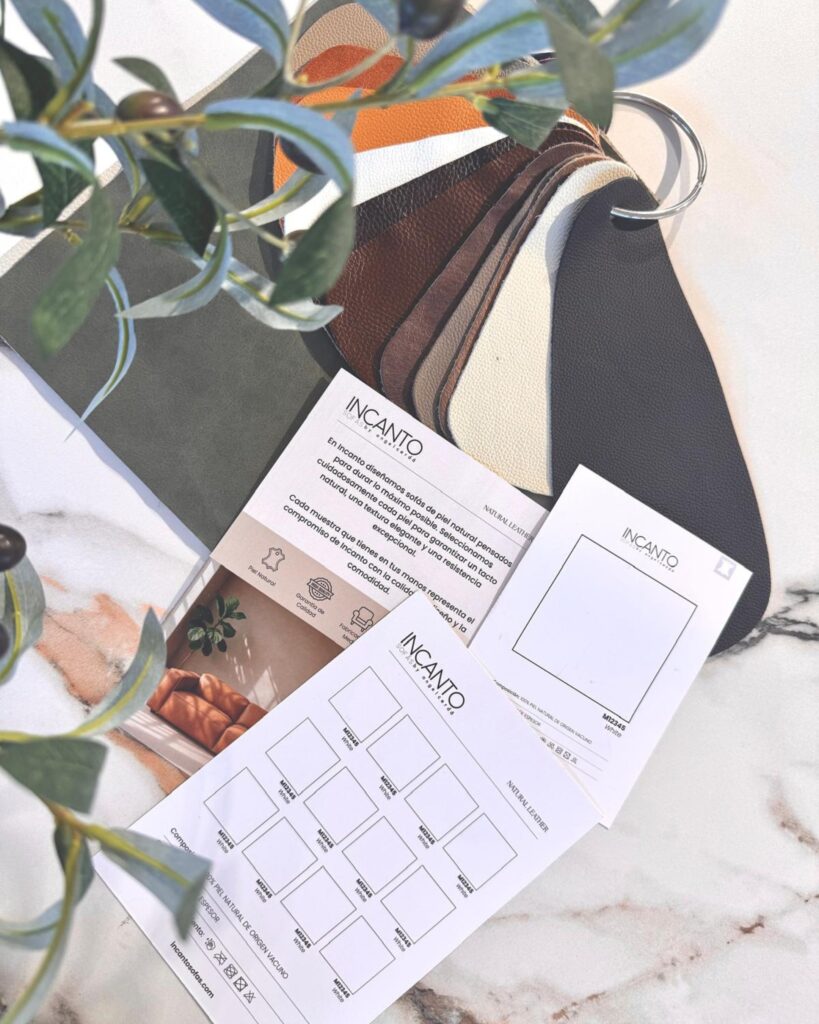 Sabemos lo importante que es acertar en la elección de color de la piel de un sofá o sillón. Por eso, si tienes dudas entre varios colores o calidades de piel, en Incanto te damos la posibilidad de elegir y recibir esas pieles antes y resolver así tus dudas ante una posible elección de compra.