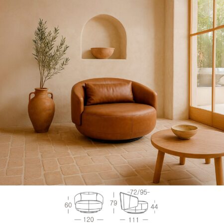 Sillón relax giratorio de diseño moderno tapizado en piel