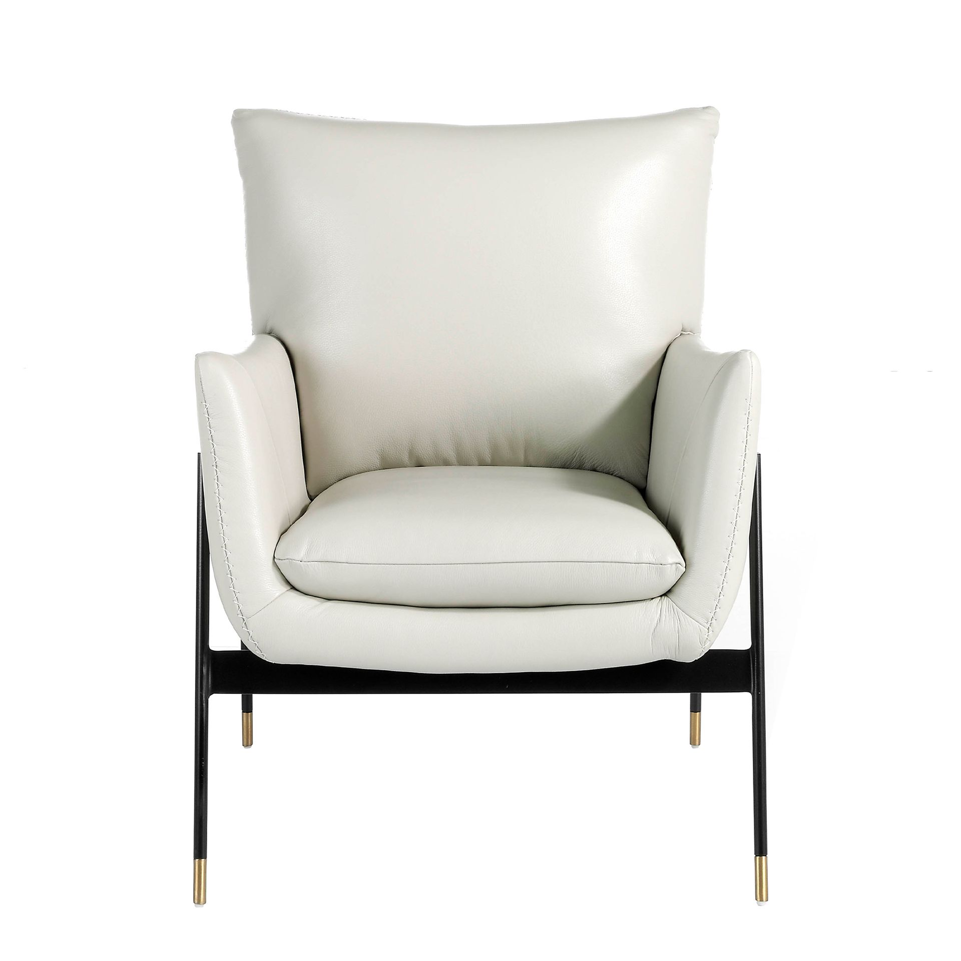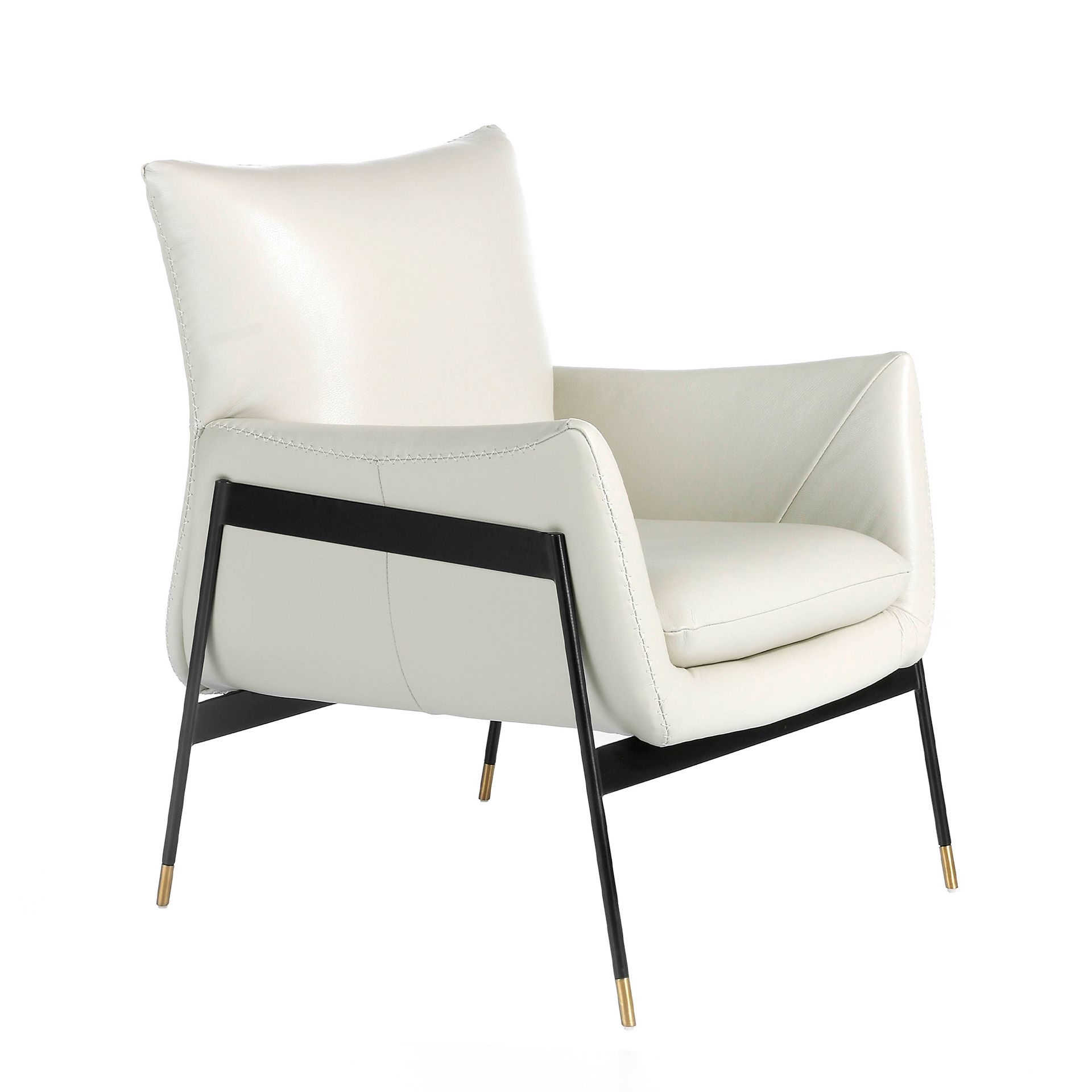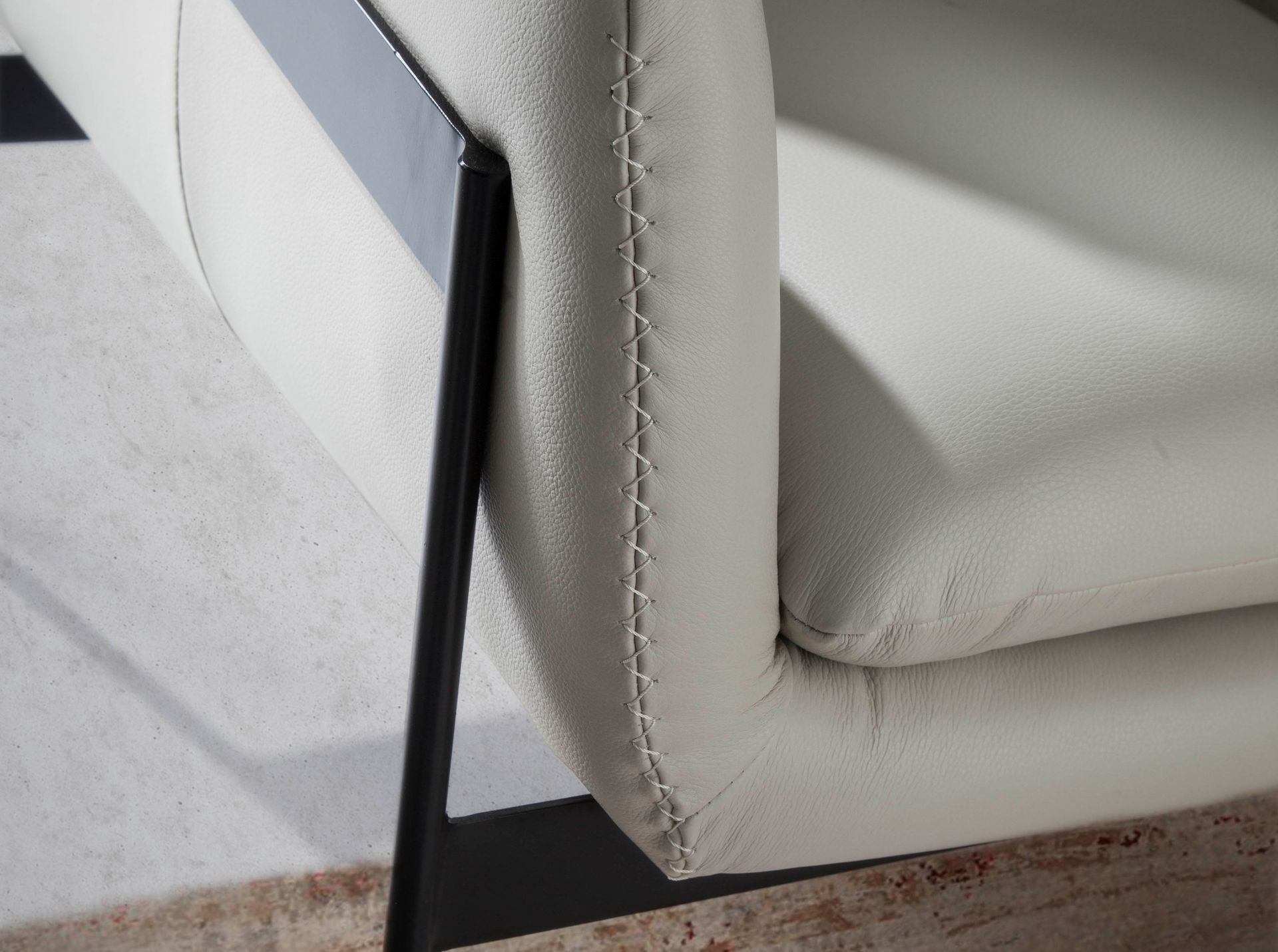 Sillón de diseño moderno tapizado en piel de origen vacuno. Tanto por su estilo, como por sus patas de acero color negro, este sillón aportará el toque de vanguardia y elegancia que busca para su hogar. Un sillón tendencia perfecto para su zona de descanso con un original detalle en acero inoxidable cromado dorado.