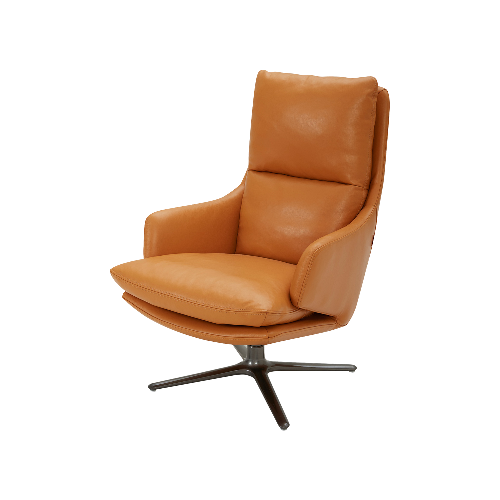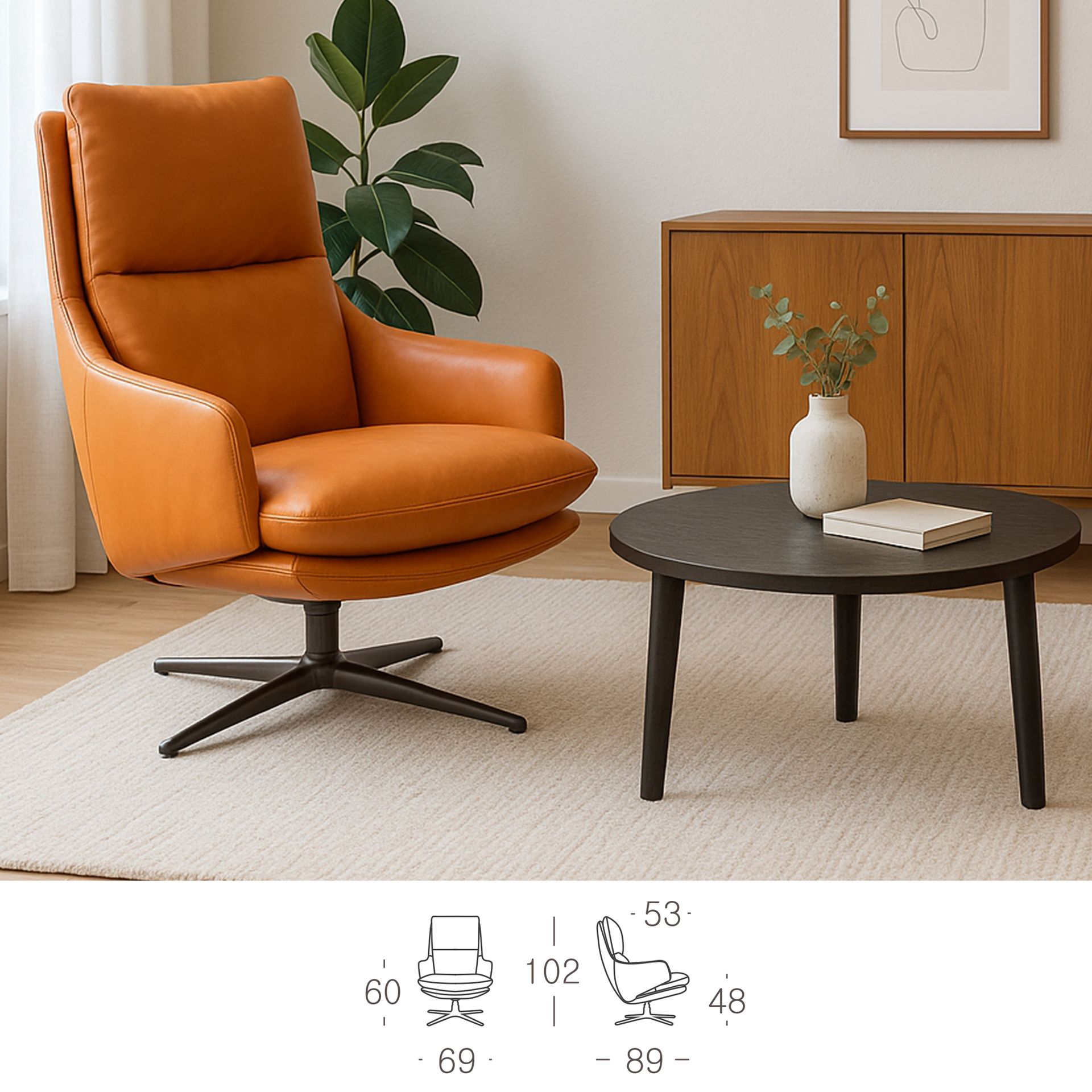 Sillón giratorio de diseño moderno tapizado en piel de origen vacuno con reposacabezas para garantizar una mayor comodidad. Tanto por su estilo, como por su base de acero color gris, este sillón aportará el toque de vanguardia y elegancia que busca para su hogar.