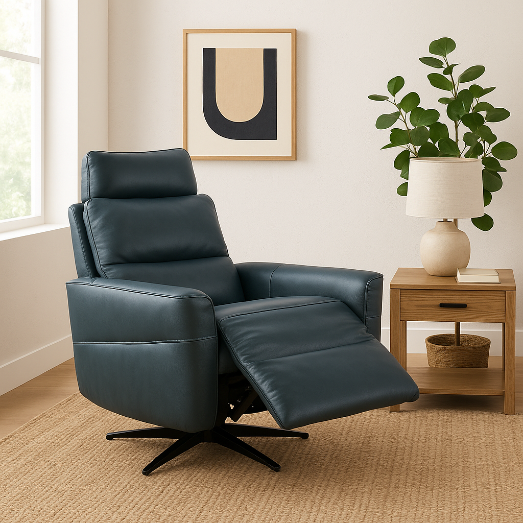 Sillón relax de diseño moderno tapizado en piel de origen vacuno con reposacabezas para garantizar una mayor comodidad. Tanto por su estilo, como por su base de acero, este sillón aportará el toque de vanguardia y elegancia que busca para su hogar.
