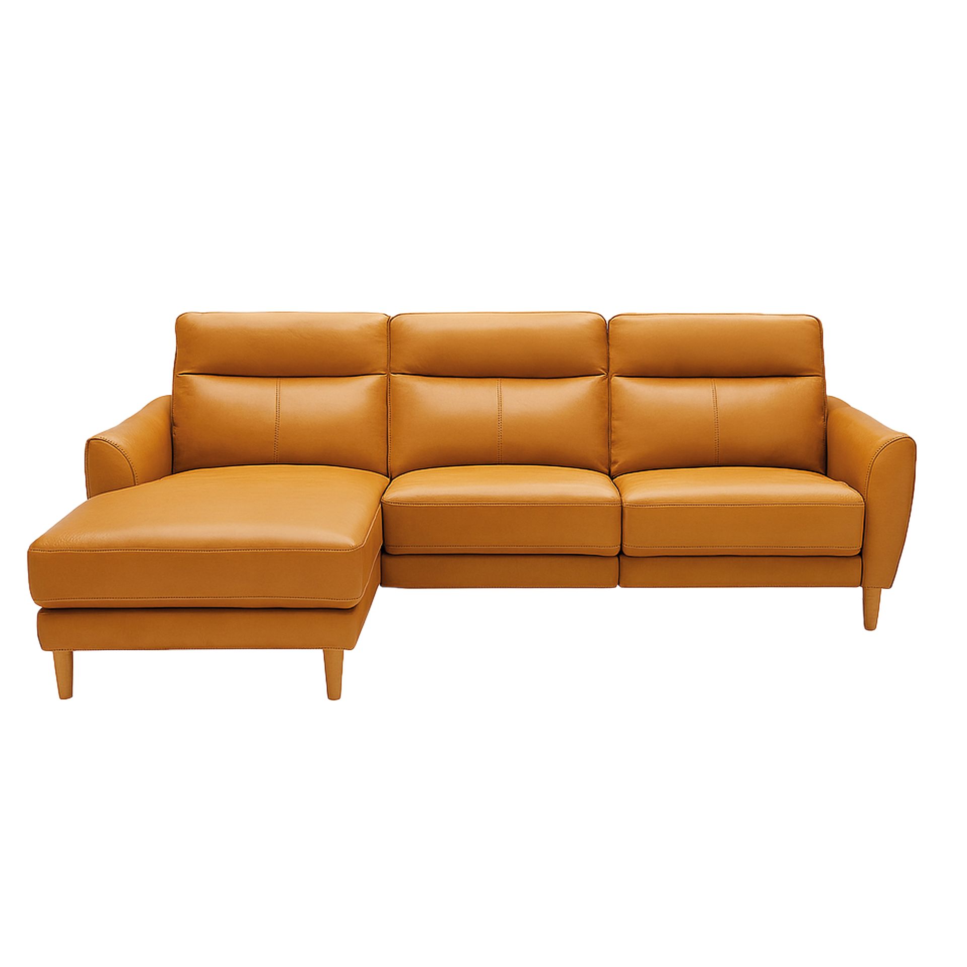 Sofá chaise longue relax de diseño moderno tapizado en piel de origen vacuno con reposacabezas para garantizar una mayor comodidad. Tanto por su estilo, como por sus patas de madera, este sofá aportará el toque de vanguardia y elegancia que busca para su hogar.