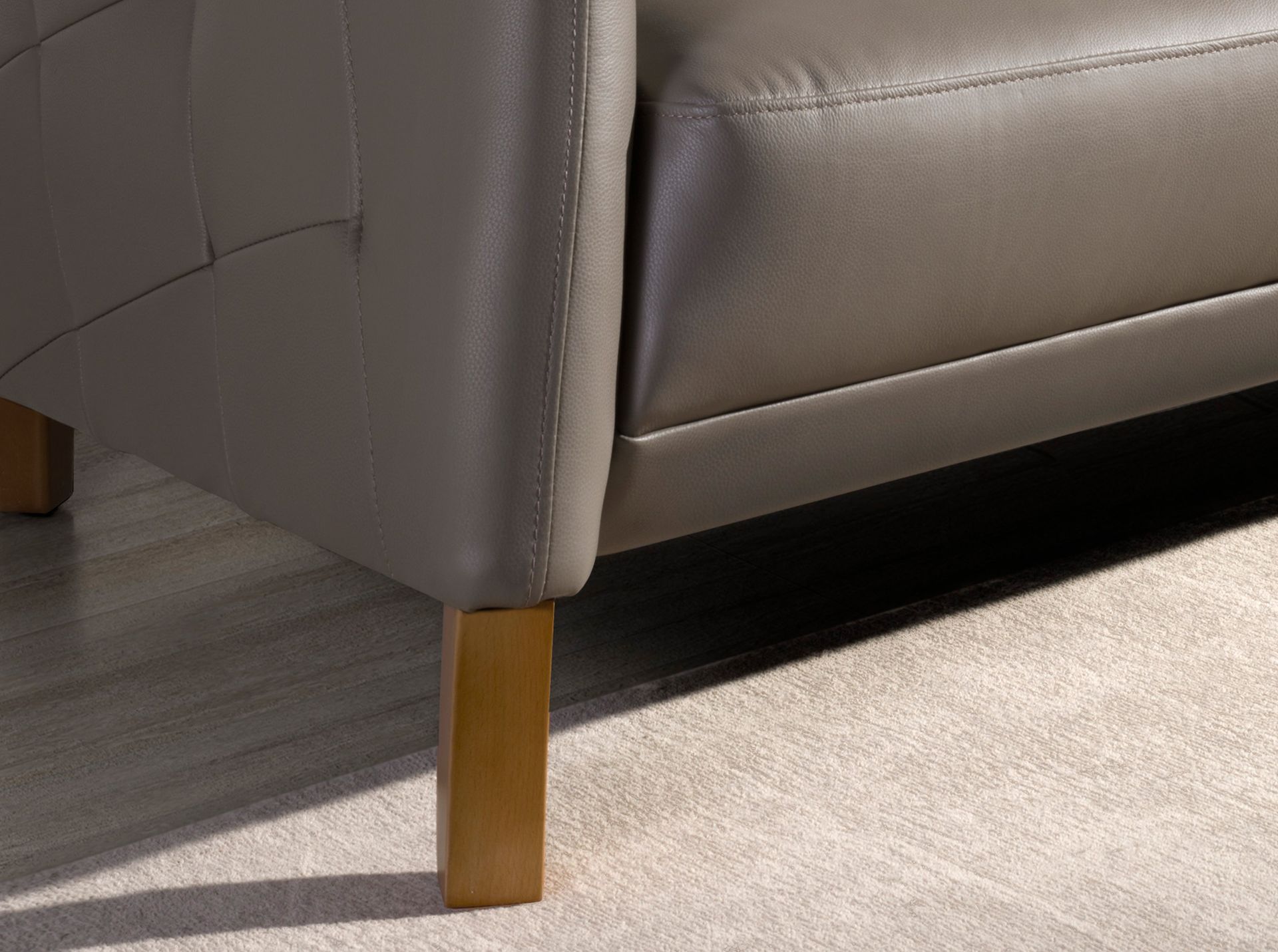 Sofá Chester 3 plazas de diseño moderno tapizado en piel de origen vacuno. Tanto por su estilo, como por sus patas de madera color miel, este sofá aportará el toque de vanguardia y elegancia que busca para su hogar.