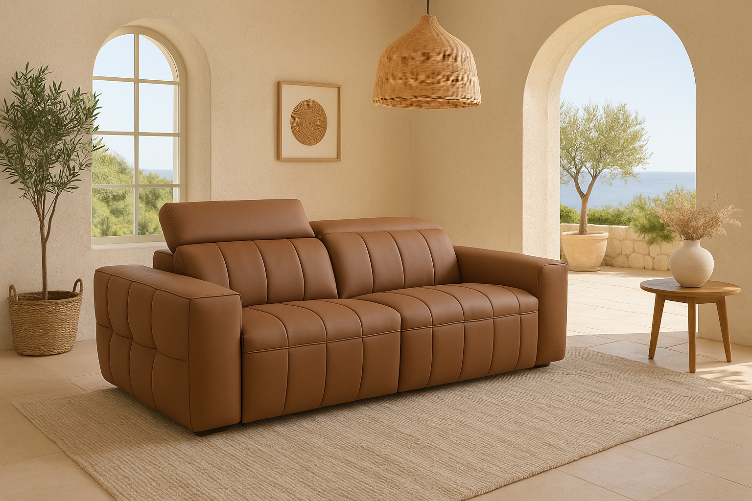 - Nuestra colección de sofás de piel de origen vacuno, está pensada para disfrutar del máximo confort y relax, a la vez que contar con el estilo y la elegancia característica de nuestra firma, combinando la durabilidad y distinción de este material con otros como la madera o el acero. Con detalles especiales y totalmente versátiles, nuestros sofás se convertirán en los protagonistas de su salón.