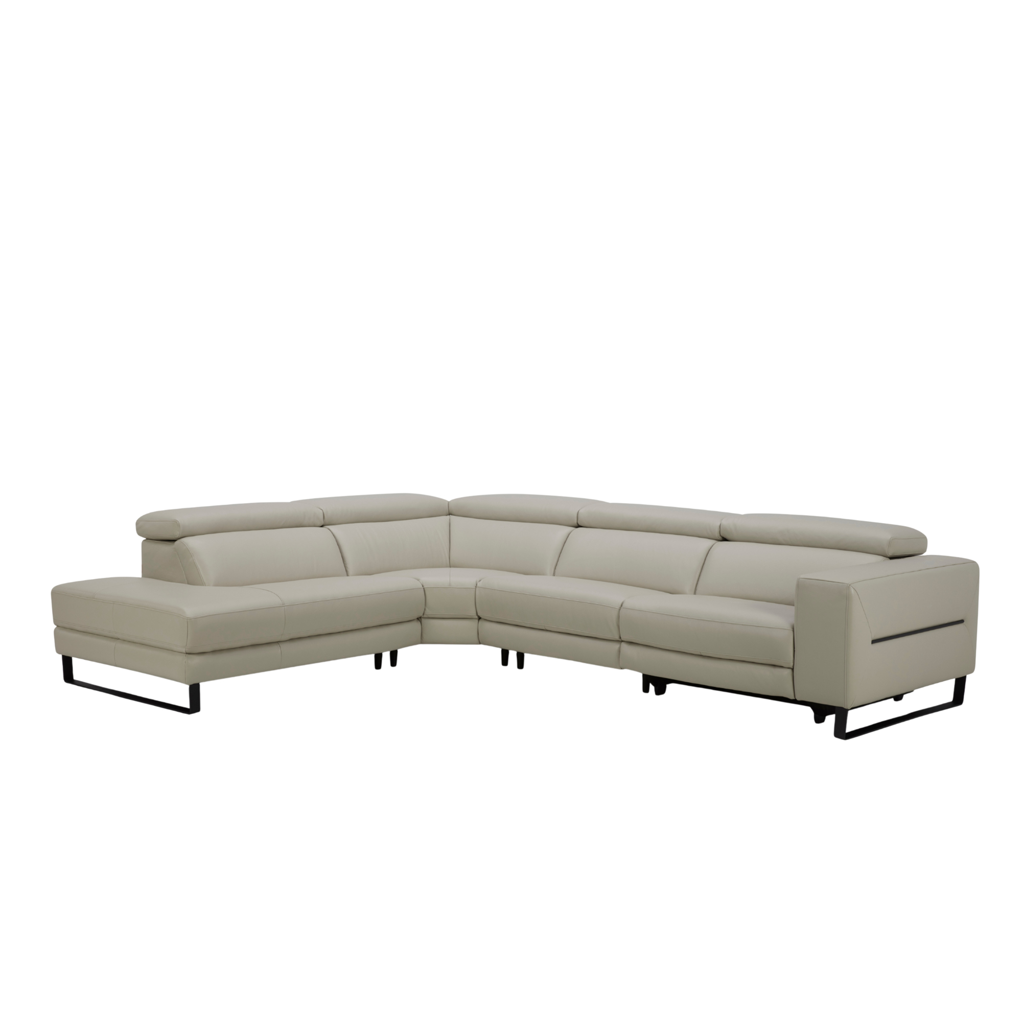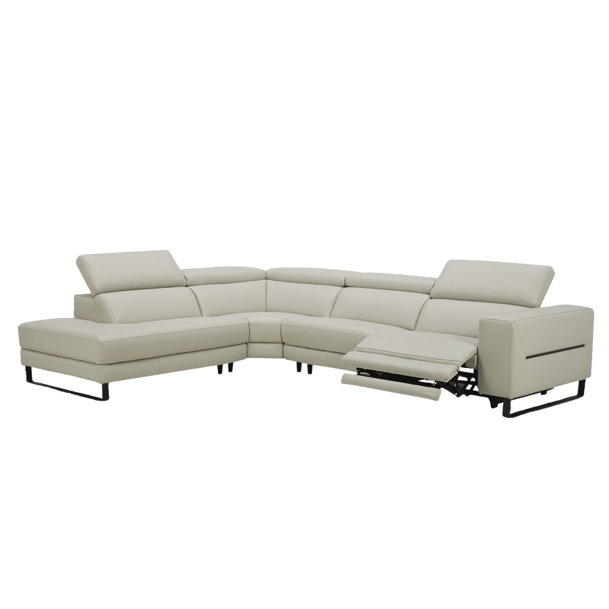 Sofá rinconera relax de diseño moderno tapizado en piel de origen vacuno con reposacabezas para garantizar una mayor comodidad. Tanto por su estilo, como por sus patas de acero color negro, este sofá aportará el toque de vanguardia y elegancia que busca para su hogar.