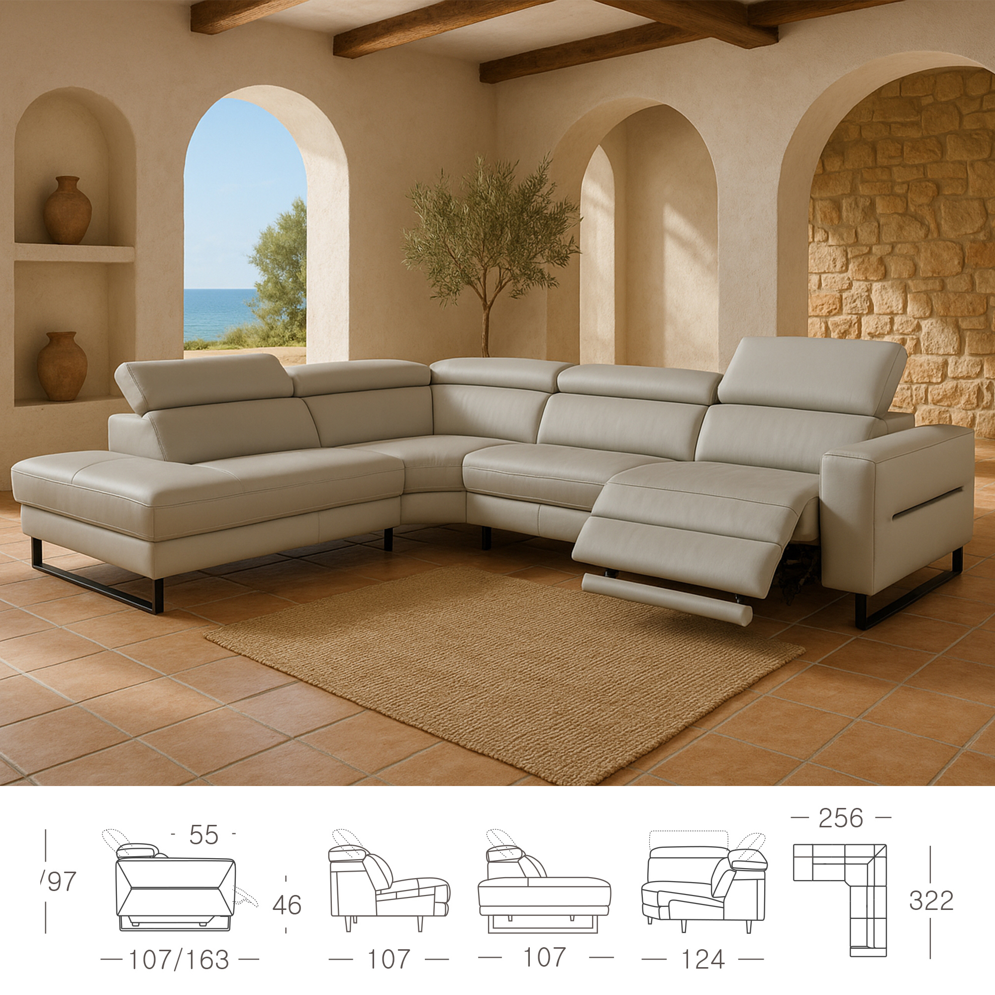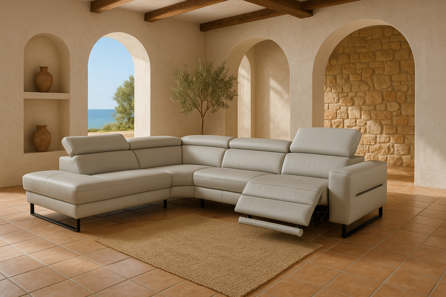 Sofá rinconera relax de diseño moderno tapizado en piel